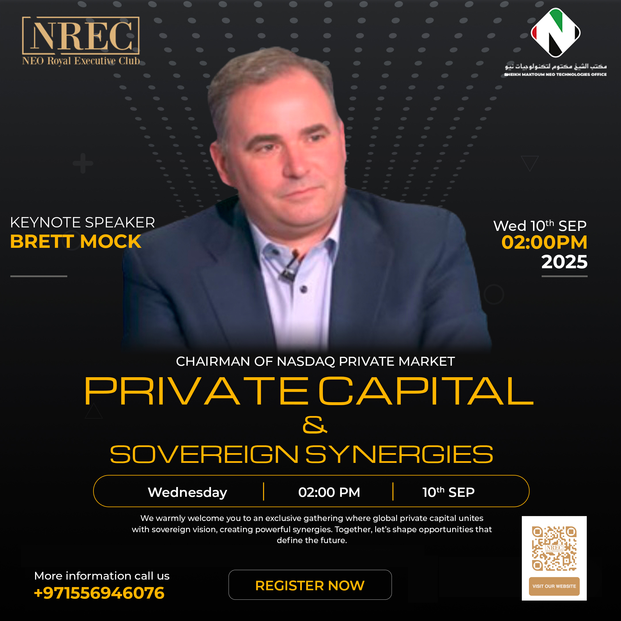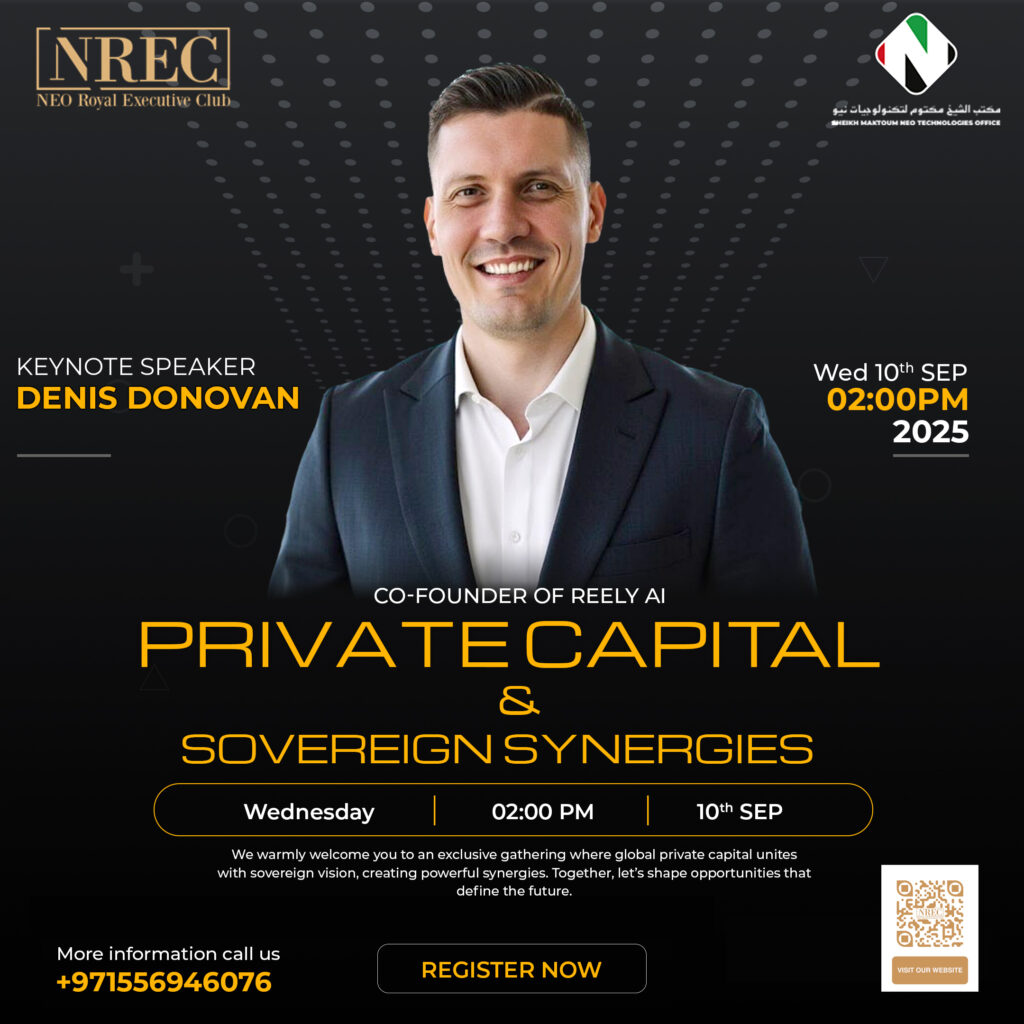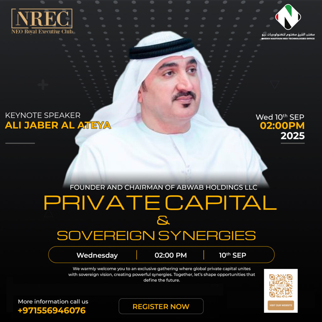 Dubai, September 10th, 2025 β A new chapter in global finance is set to unfold at the exclusive Private Capital & Sovereign Synergies event, hosted by the NEO Royal Executive Club in partnership with Sheikh Maktoum NEO Technologies Office.